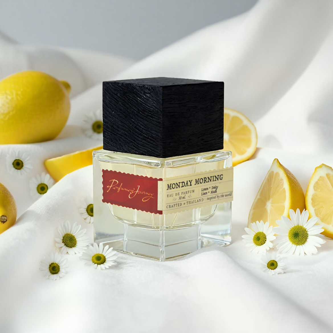 Monday Morning ยามเช้าวันจันทร์ที่แสนสบายบนเตียงที่มีกลิ่นผ้าคอตตอนลินิน แต่ก็ต้องสลัดความขี้เกียจขึ้นมาเริ่มวันด้วยดอกเดซี่และกลิ่นเลมอนที่เป็นตัวแทนของยามเช้า